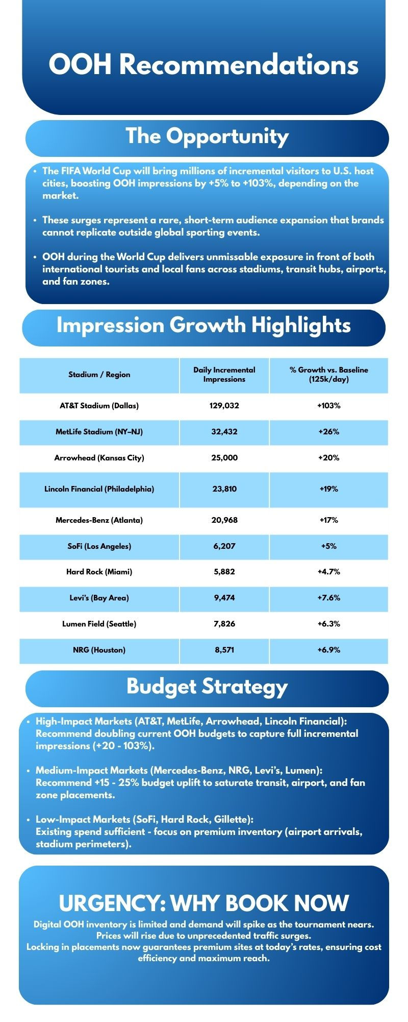 Client Recommendations: Framed strategies around urgency, advising early commitments to digital OOH inventory to lock in placements before demand spikes and costs rise.